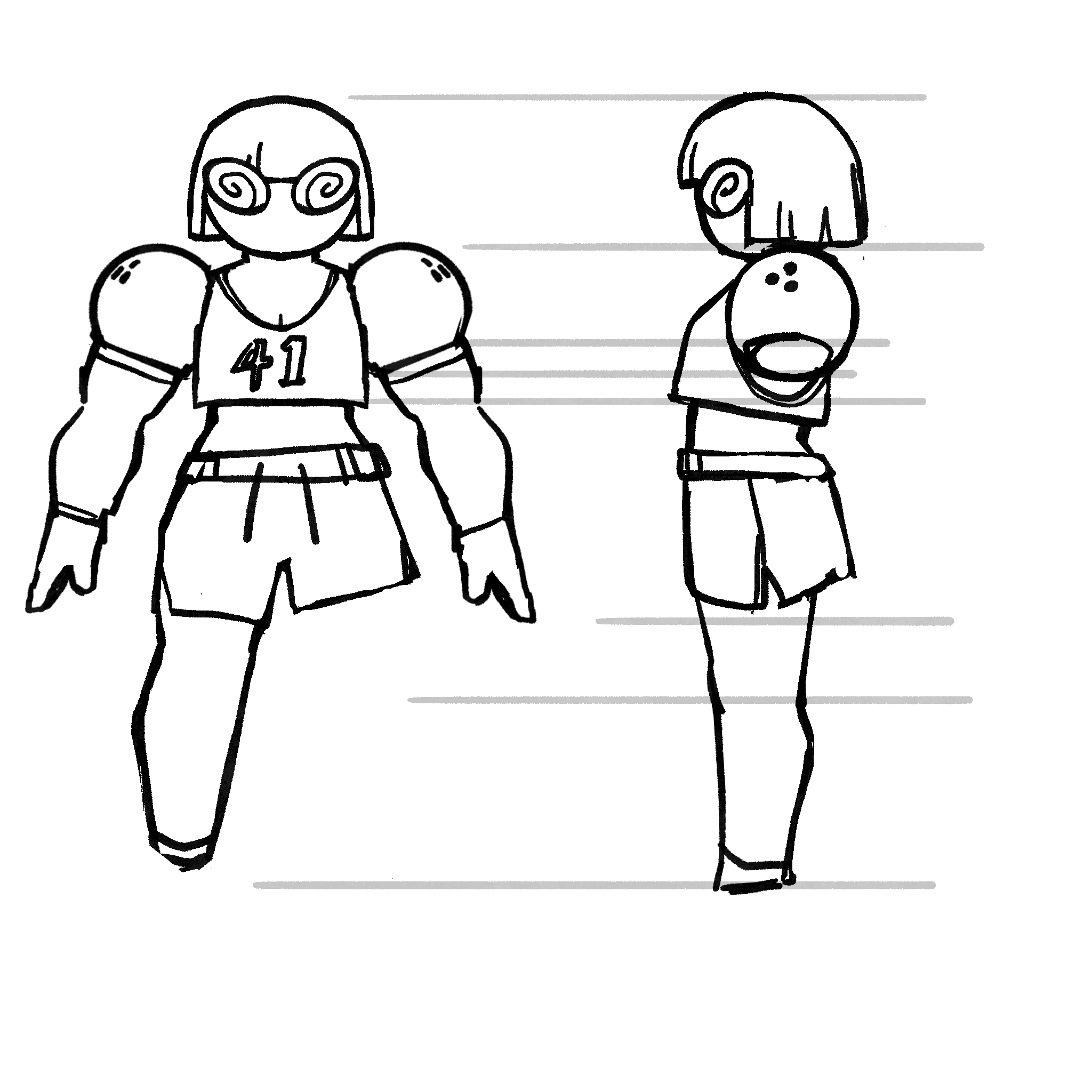 Hello again me! This was a huge update, which reworked every single menu and added a new stage and Hyperbowle, my newest character. Her design took much longer than Juan's to nail down, since I was still figuring out the new 3D style. I've posted concept art here to show her evolution from skintight superhero to more bulky sports head. every time I make a new character I feel myself getting slightly better at modelling/rigging/animationg. Surely the next character will be my best work yet. For now, I hope people will enjoy her :).